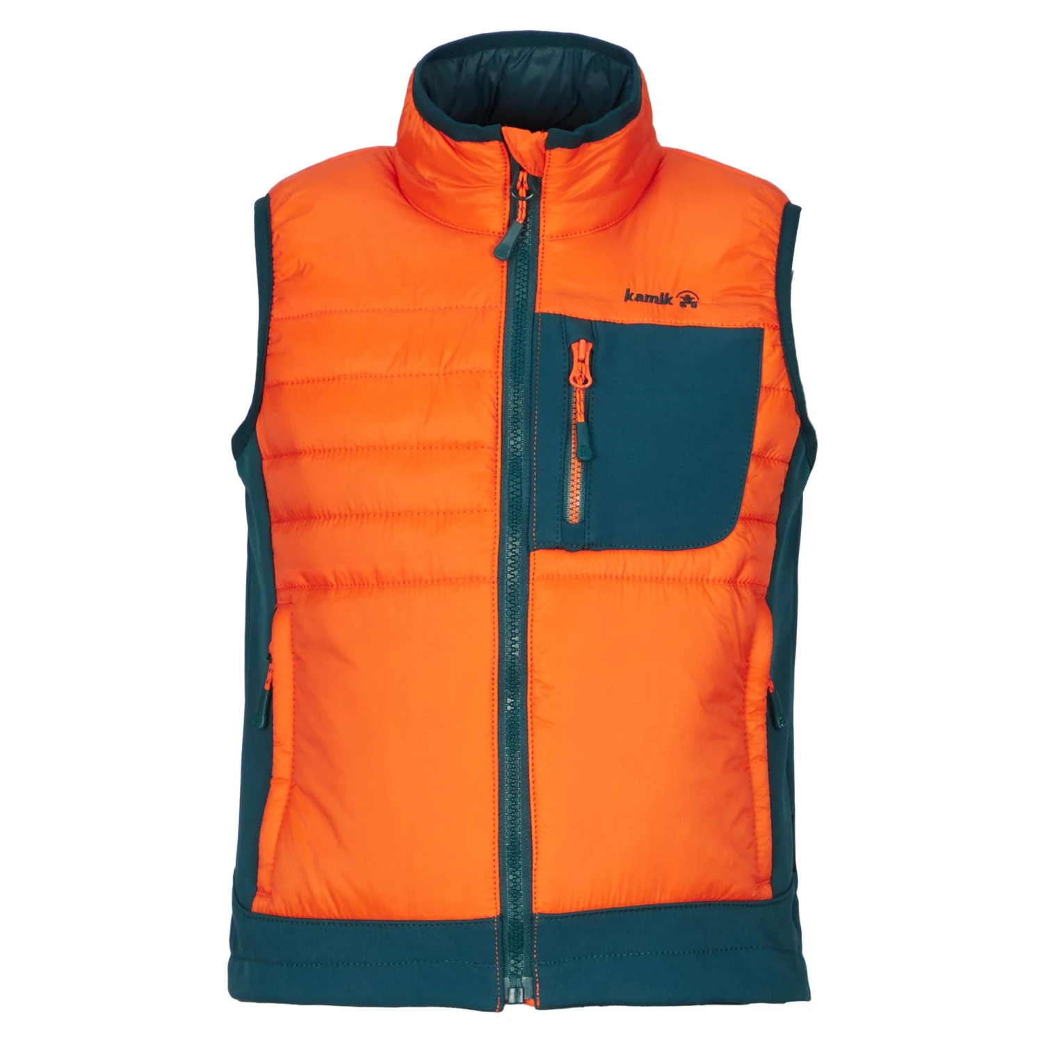 Damit die Weste beim Toben, Spielen und Erkunden gut sitzt, verfügen alle Säume über elastische Einfassungen. Auch der angenehme Stehkragen optimiert den Komfort bei kühlen Bedingungen. Ein Hingucker ist zudem die gesteppte Wattierung, die sich optisch toll von den anderen Partien abhebt und für eine begeisternde Farbkombi sorgt. Und damit auch wertvolle Fundstücke sicher aufbewahrt werden können, bietet die Hollis deinen Kids drei praktische RV-Taschen.